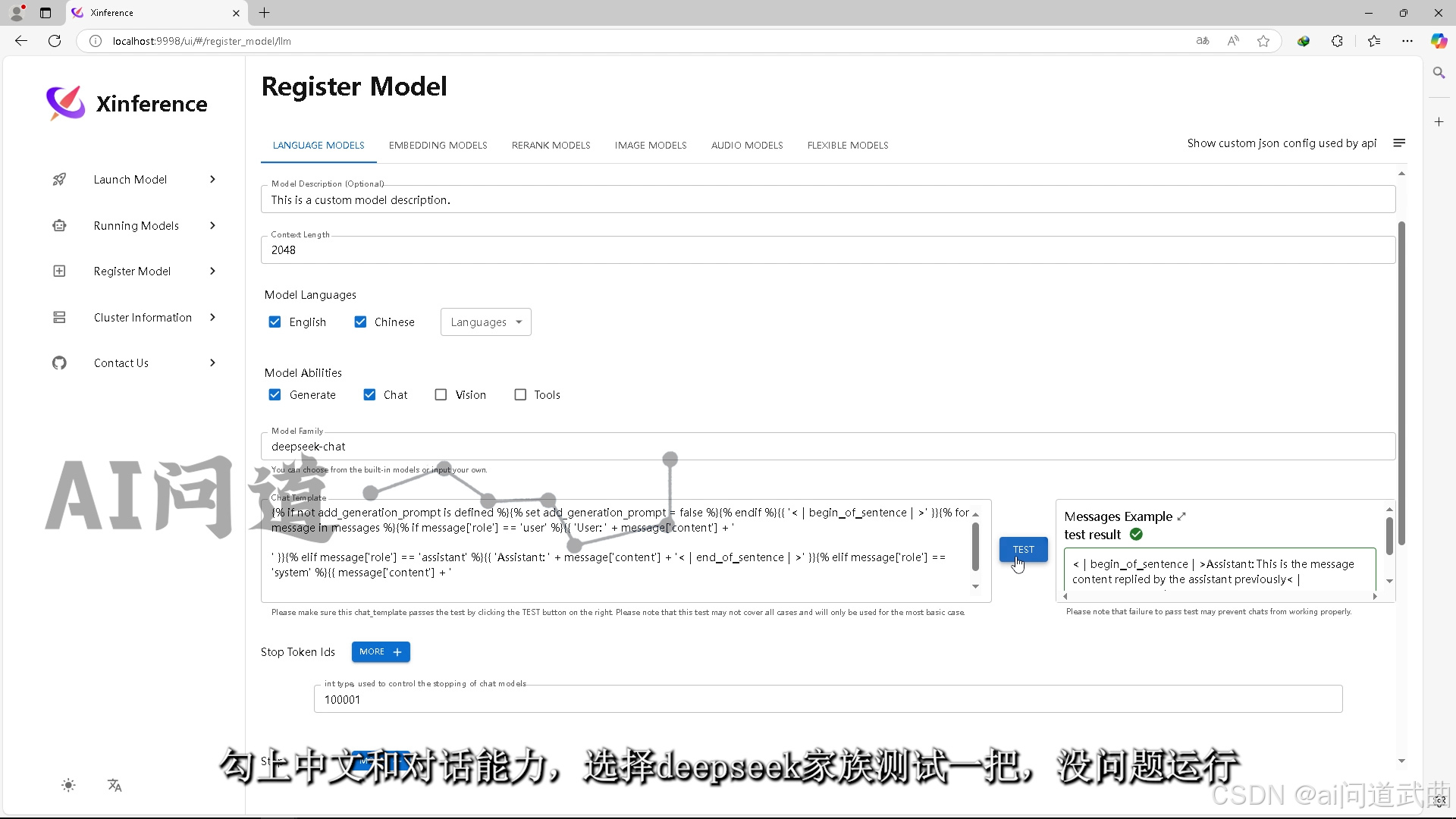 勾上中文和对话能力,选择deepseek家族测试一把,
