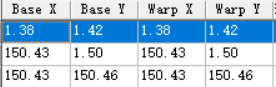 6、自己建立配准点(这里选择对应的三个角),平移最重要的是Base X/Y和和Warp X/Y要对应,所以在建立配准点的时候确定了Base X/Y,之后直接输入相同的Warp X/Y即可。