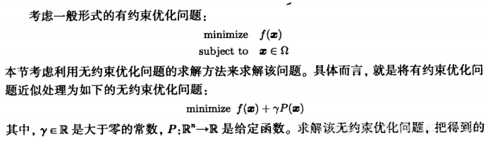 1)对于约束问题,转化为无约束问题,其中会加一个惩罚项,惩罚大小与超出约束正相关。
