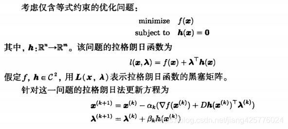 4.1 仅含等式约束时,拉格朗日法迭代更新: