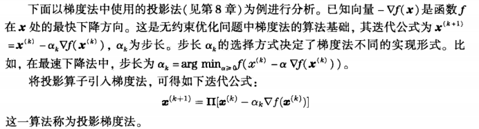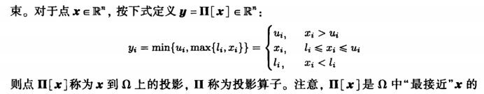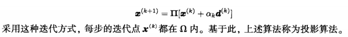 这样对上面的迭代形式进行改进,然每次迭代后的点保持在约束内: