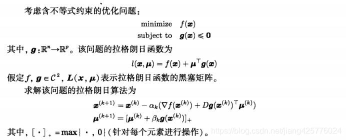 4.2 含不等式约束时,拉格朗日法迭代更新: