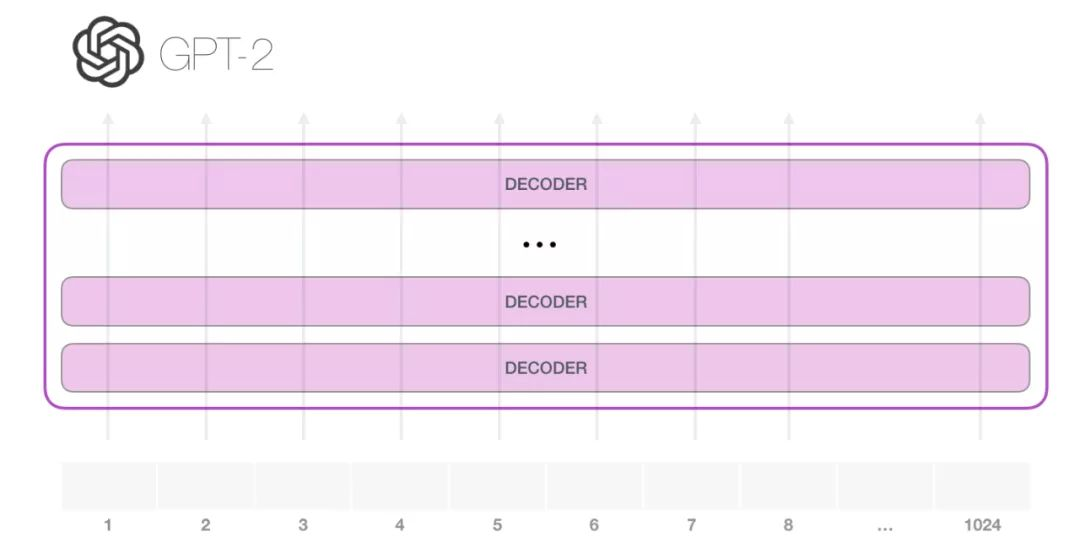 GPT-2 可以处理最长 1024 个单词的序列。每个单词都会和它的前续路径一起「流过」所有的解码器模块。
