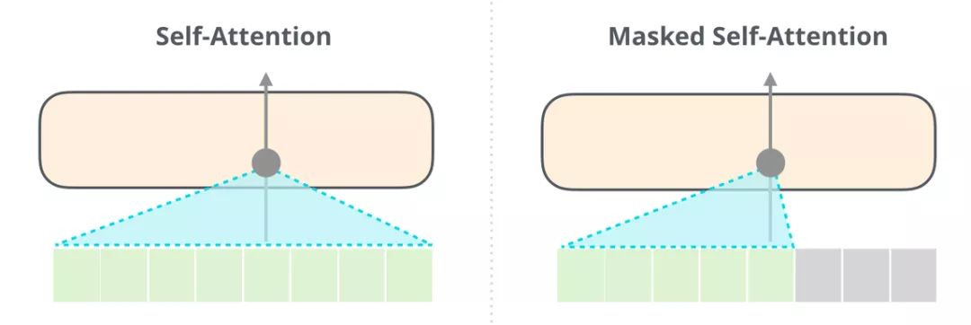 解码器在自注意力(self-attention)层上还有一个关键的差异:它将后面的单词掩盖掉了。但并不像 BERT 一样将它们替换成特殊定义的单词<mask>,而是在自注意力计算的时候屏蔽了来自当前计算位置右边所有单词的信息。
