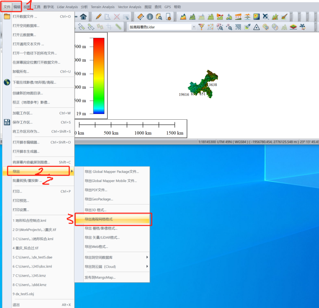 第六步:选择调整海拔后的图层,导出,依次点击如下图: