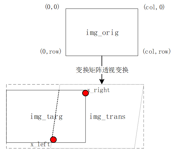 为了更好理解removal_seam函数,有必要绘制一个简单的示意图(关于img_trans, img_targ)。img_trans的变换需要通过特征匹配计算变换矩阵T,特征提取可以选择为SIFT、SURF、ORB等。