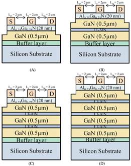 理论推算得出10-20nm的LT-AlN层能够平衡0.7-1µm厚GaN的张应力[24],为了生长更厚并且无裂纹的GaN层,提出了周期性插入LT-AlN层来补偿张应力的方法[25]。2011年,Dadgar等人[26]采用多层LT-AlN插入层的方法生长了14.6µm厚的高质量无裂纹GaN层。紧接着,Wosko等人[27]通过调整GaN生长过程中的Ⅴ/Ⅲ比并采用LT-AlN插入曾,实现了AlGaN/GaN异质结,迁移率达到了2057cm2/(V·s),方块电阻Rsh达到了392Ω/sq。虽然此时实现了较好的材料生长,但对于GaN HEMT器件而言,晶体质量还需要进一步提高。AlGaN缓冲层主要包括有Al组分步阶变化和线性变化两种类型,原理为通过实现晶格常数和热膨胀系数的逐渐变化来进行应力补偿,避免出现晶圆翘曲、大量位错和晶圆裂纹,从而减少漏电并提高击穿电压。除此之外,在GaN HEMT器件中,AlGaN缓冲层能够起到背势垒的作用,提高二维电子气的限域性,降低缓冲层漏电,提高器件击穿电压。Cheng等人[28]通过采用低Al成分的单AlGaN缓冲层层,成功地在Si衬底上制造了高质量和均匀的AlGaN/GaN异质结构,表现出2150 cm2 V-1 s-1的高电子迁移率,以及9.3×1012 cm-2的ns,Rsh为313 ± 4 Ω sq-1,变化±1.3%。随后,Li 等[29]提出了阶梯型的AlGaN缓冲层,生长3.0 μm厚的高质量GaN外延层XRD扫描GaN(0002) GaN(1012)半高宽分别为272arcsec和297arcsec。超晶格结构的缓冲层有AlGaN/AlGaN型、AlN/GaN型、AlGaN/AlN型等。2014年,Shen等人[30]报道了MOCVD生长的Si基AlGaN/GaN异质结,并运用了AlN/GaN超晶格结构,电子迁移率和二维电子气浓度分别达到了~1500 cm2 V-1 s-1和1.2×1013 cm-2。在上述这些缓冲层设计当中,渐变AlGaN和超晶格结构被广泛应用于GaN基HEMT器件当中。