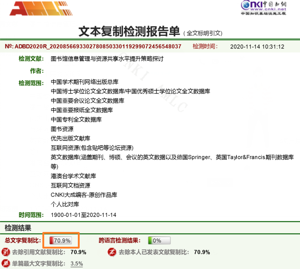 Aliwen相信细心的同学们,都会发现重复率了吧?不知道的就点击最下方的“知网报告”这个按钮就可以与知网官方文库对比70.9%的重复率。如果你不信大可区试一试哦。
