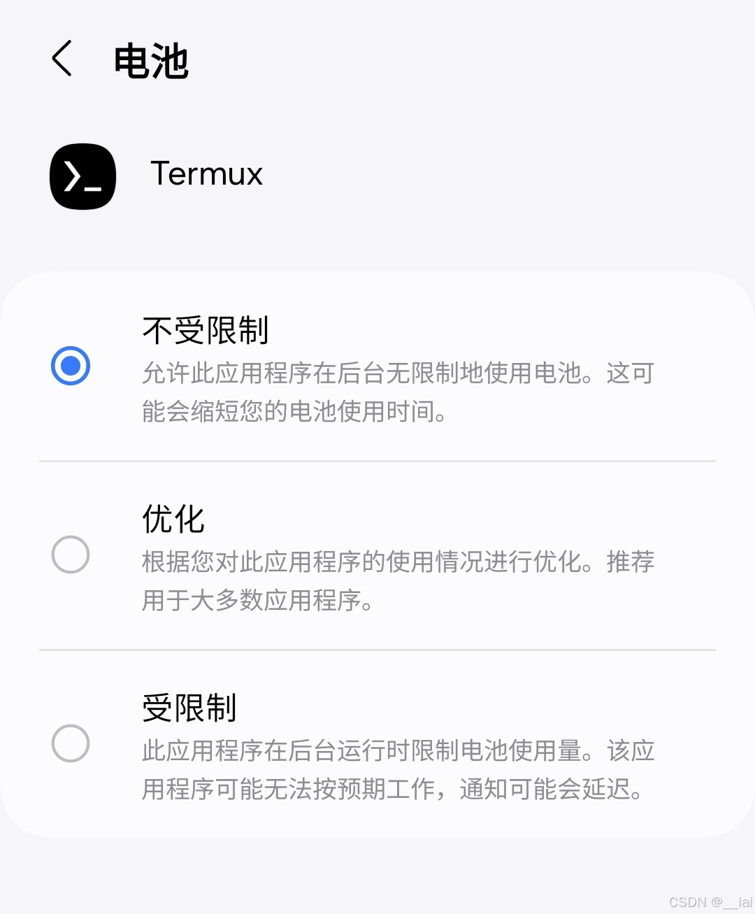 如果在手机上运行模型,进入后台后termux可能被限速或停止进程,需要设置电池选项, 或者 放在小窗口运行(但这种方法很容易让页面重新加载导致程序停止)