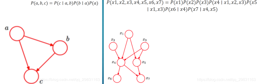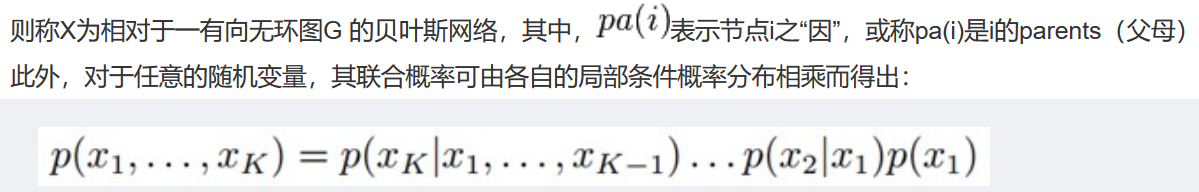 贝叶斯网络有一条极为重要的性质:每一个节点在其直接前驱节点的值确定后,这个节点条件独立于其所有非直接前驱父辈节点。因此,任意随机变量组合的联合条件概率分布被化简: