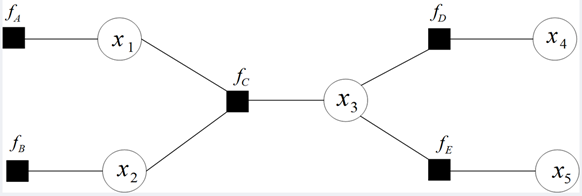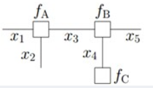 在因子图中,所有顶点不是变量节点就是函数节点,边线表示它们之间的函数关系。