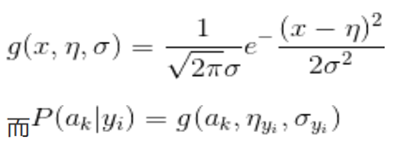 计算各个划分的条件概率P(a|y)是朴素贝叶斯分类的关键性步骤,当特征属性为离散值时,只要很方便的统计训练样本中各个划分在每个类别中出现的频率即可用来估计P(a|y),当特征属性为连续值时,通常假定其值服从高斯分布(也称正态分布)。即: