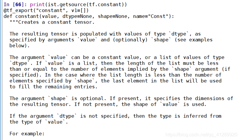1.Ctrl+鼠标点击函数名(对应的函数名会加下划线) 或 Ctrl+g2.help(function)在某些情况下方法1失效,比如TensorFlow中的一些函数tf.constant,他只会跳转到一个init文件,并不会展示函数原型。所以可以这样help(tf.constant),就可以3.使用inspect包import inspect as ist...