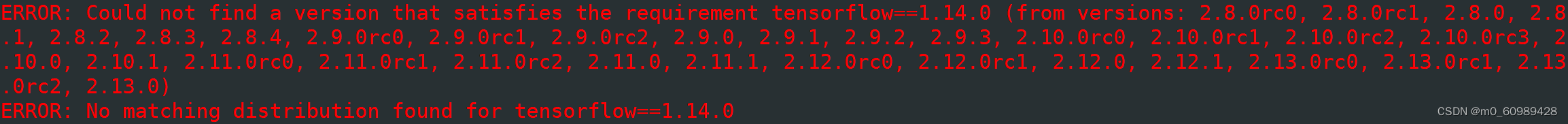 ERROR: No matching distribution found for tensorflow==1.14.0
