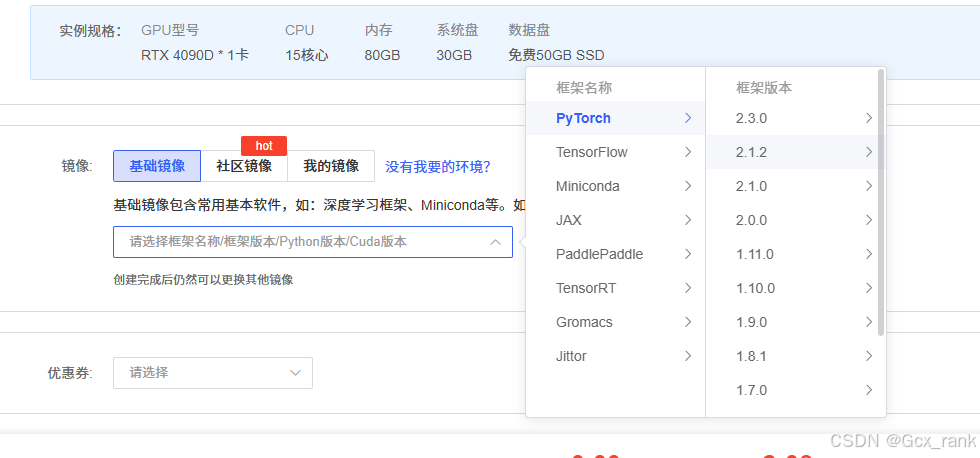 选择想要的卡,在下方选择需要的镜像后点击“立即创建”。