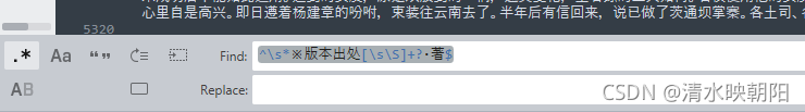 匹配以 ※版本出处为开始, 以·著为结尾的字符串, 会发现,它会一直匹配到小说的末尾,把中间的小说章节内容也匹配进去了,显然不是我们希望的。