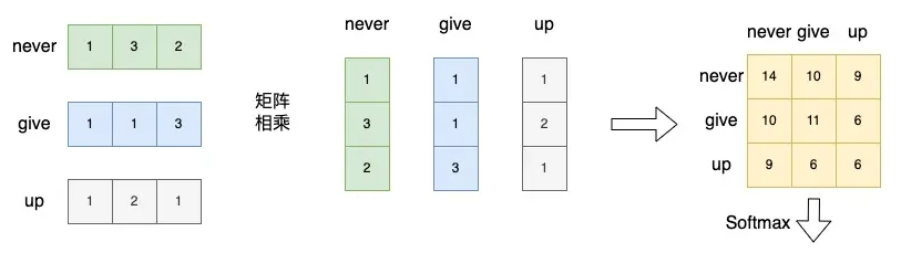 ,再进行Softmax。经过Softmax的归一化后,每个值是一个大于0小于1的权重系数,且总和为0,这个结果可以被理解成一个权重矩阵。