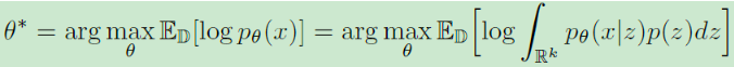 但是上面这个式子在数学上是很难求解的,因此VAE构造了一个新的概率分布 q ( z ∣ x ) q(z|x) q(z∣x),也称之为编码分布(encoder distribution),现在重写最大似然估计: