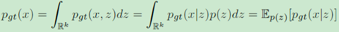 从上式我们可以明白,只要我们能够找到 p g t ( x ∣ z ) p_{gt}(x|z) pgt(x∣z),那么就能利用其生成新样本(先从先验分布采样z,再根据 p g t ( x ∣ z ) p_{gt}(x|z) pgt(x∣z)采样生成新的X):