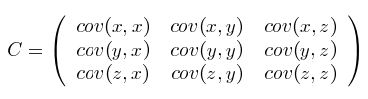 接下来看一下方差矩阵的表示,我这里没找到二维协方差矩阵的表示,用三维协方差矩阵表示一下: