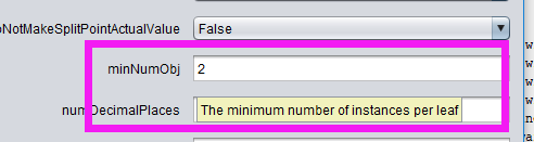 继续更改配置信息:minNumObj:每个叶节点所含实例的最少数量。