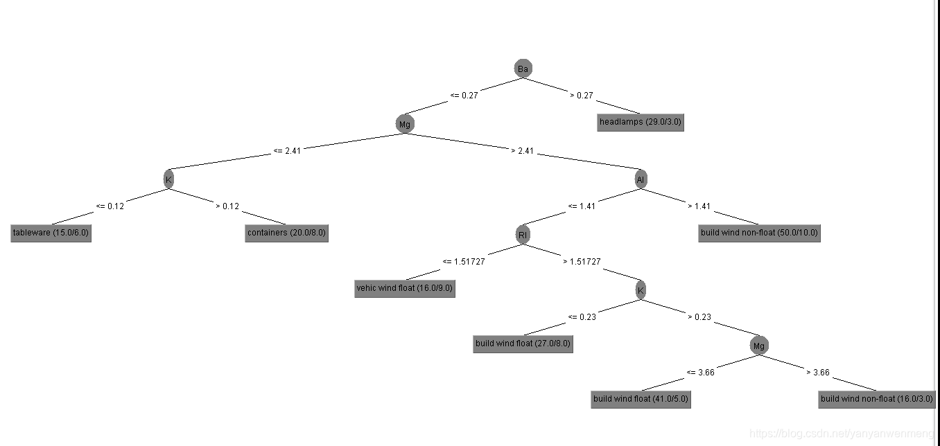 如果Ba的含量低,我们继续看Mg的含量,如果Mg的含量低,我们继续看K的含量,如果K的含量低,则分类为tableware.