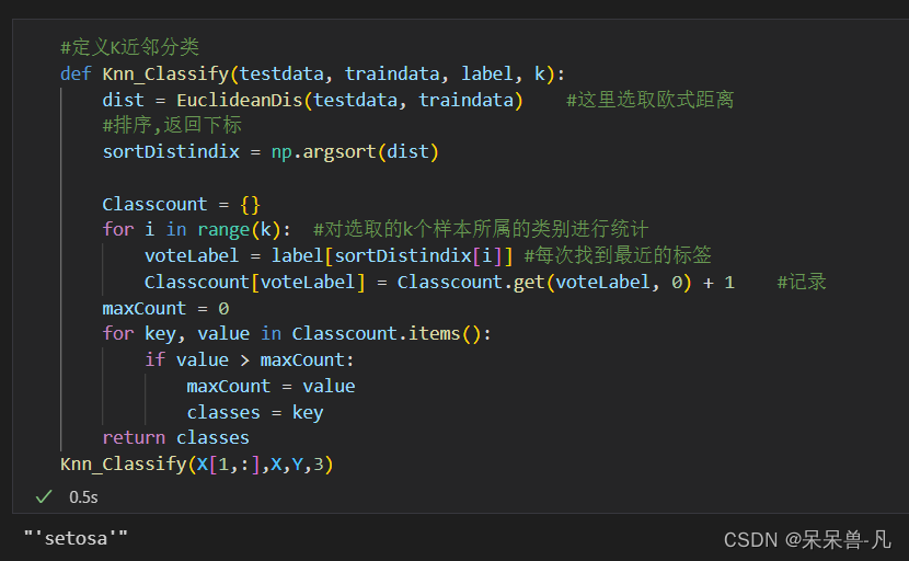 voteLabel = label[sortDistindix[i]] #每次找到最近的标签