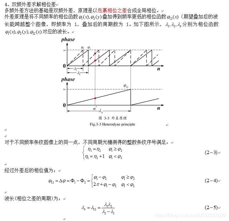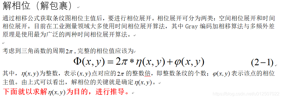 通过相移公式获取条纹图相位主值后,要进行相位展开。相位展开可分为两类:空间相位展开和时间相位展开。目前在工业测量领域大多使用时间相位展开算法,其中Gray编码加相移算法与多频外差原理是使用最为广泛的两种时间相位展开算法。通常基于多频外差原理相位展开的精度与稳定性更好。