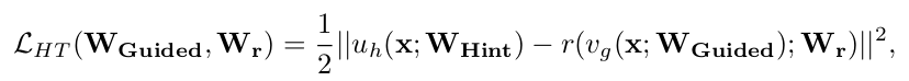 其中 uh和 vg分别为教师/学生网络至提示层/引导层的深度嵌套函数(参数为 WHint 和 WGuided),r 为引导层顶部的回归器函数(参数为 Wr)。需保证 uh和 r的输出可比,即二者需采用相同的非线性激活函数。