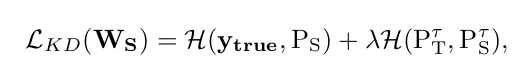 学生网络的训练目标为最小化以下损失函数: