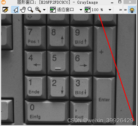 *一个区域有一个最大的直线距离*圆的最大直线距离是直接*矩形的最大直线距离是对角线*椭圆的最大直线距离是它的长轴*不规则的区域,也可得到最大直线距离*从而也能够获得最大外切圆read_image(Image,'keypad')rgb1_to_gray(Image,GrayImage)regiongrowing(GrayImage,Regions1,20,20,10,8000)select_obj(
