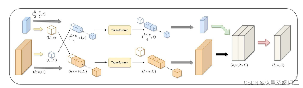 TIF模块如图所示,就是把对方的特征图进行平均池化,然后作为加到对方拉平后的特征图尾部,进行transformer计算