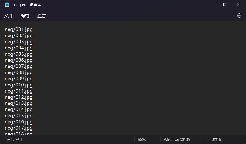 for picname in neg: # 遍历neg文件数组所有的文件名