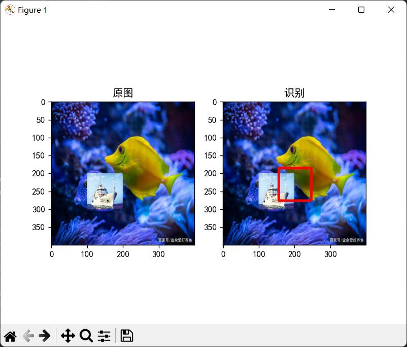 import cv2 as cv import matplotlib.pyplot as plt #解决中文显示问题,固定格式,直接复制下面俩行代码就行 plt.rcParams['font.sans-serif']=['SimHei'] plt.rcParams['axes.unicode_minus']=False # 加载分类器 cascade = cv.CascadeClassifier("./xml/cascade.xml") cascade.load("./xml/cascade.xml") # 读取灰度图片 pic1 = cv.imread("boat.jpg") pic2= cv.imread("./ini_neg/0b46f21fbe096b639ef96b67fc926942eaf8ac49.jpeg") pic1=cv.resize(pic1,(100,100)) pic2=cv.resize(pic2,(400,400)) pic2[200:300,100:200]=pic1 gray = cv.cvtColor(pic2,cv.COLOR_BGR2GRAY) # 探测图片中的船只 faces = cascade.detectMultiScale( gray, scaleFactor = 1.1, minNeighbors = 150, minSize = (50,50), ) #绘制矩形 pic3=pic2.copy() for (x,y,w,h) in faces: cv.rectangle(pic3,(x,y),(x+h,y+w),(0,0,255),5) #绘图 fig,axes=plt.subplots(nrows=1,ncols=2) axes[0].imshow(pic2[:,:,::-1]) axes[0].set_title("原图") axes[1].imshow(pic3[:,:,::-1]) axes[1].set_title("识别") plt.show() cv.waitKey()