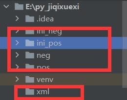 在当前文件夹下新建五个文件夹,pos和neg放处理后的图片,ini_pos和ini_neg放原来的图像,xml放以后自定义生成的分类器