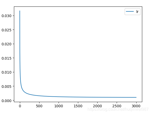 先打印看一下原始版本的学习率变化(所谓原始,对比的是如果我用其他参数组合来更新lr,放在尾部对比):