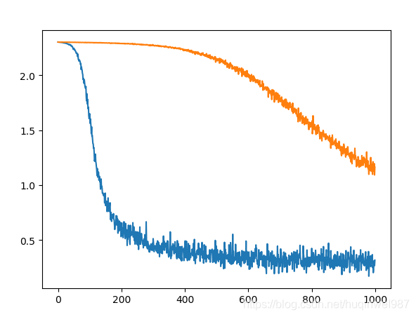 结果对比:batch=256,图一差距明显,图二迭代到10000次才逐渐拉小差距,但是也没能接近