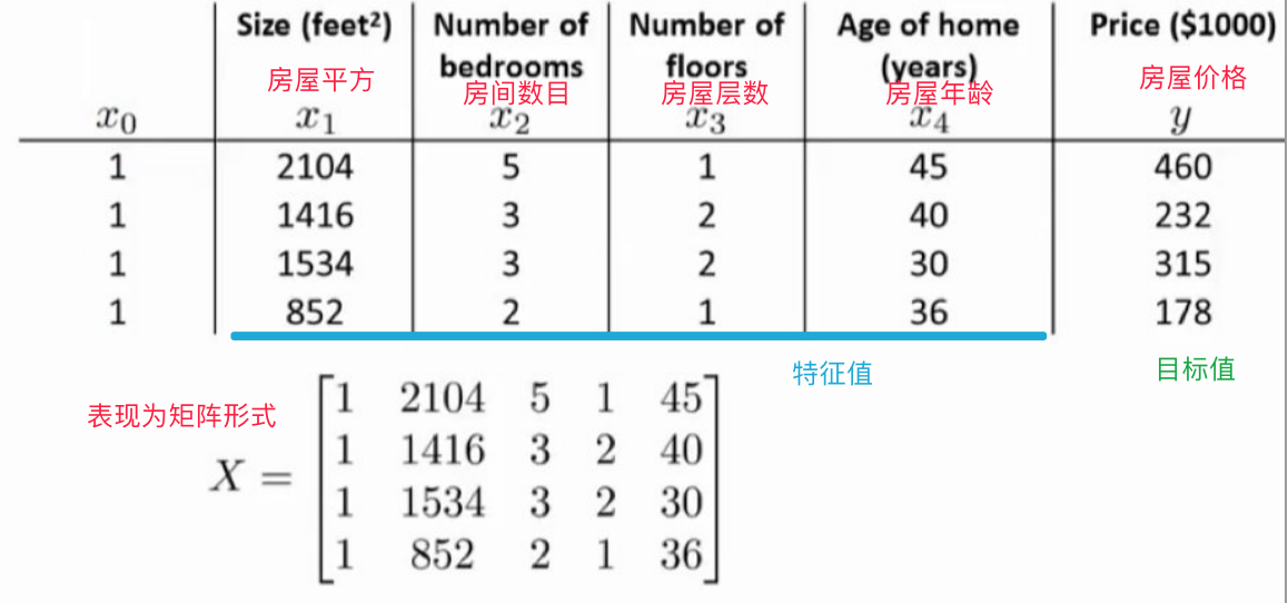 - 线性回归用矩阵(线性代数里面的)来举例: