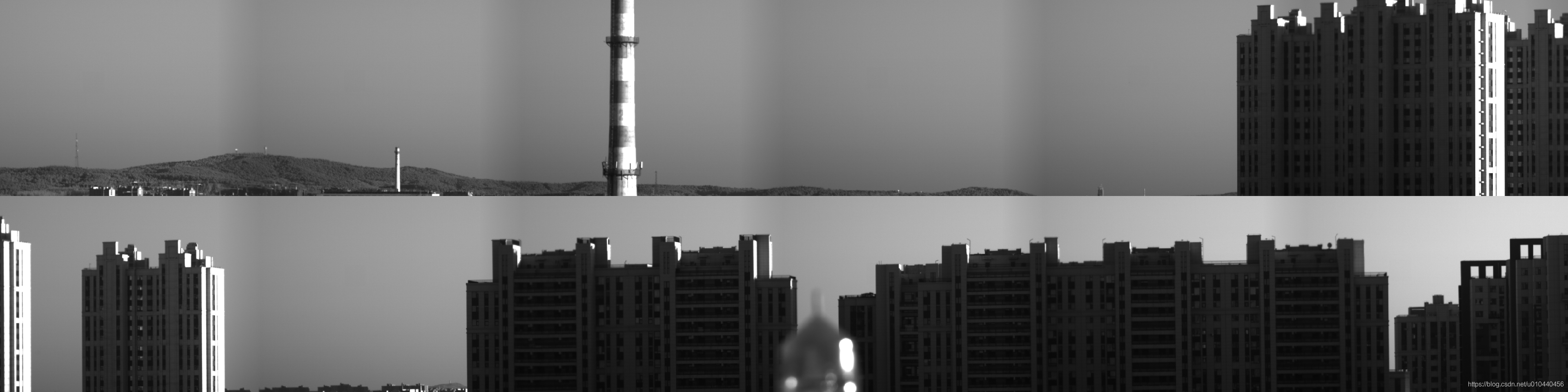 由于旋转相机,可以将其看成只有x和y方向上的平移,其中x方向重叠像素比较多即平移比较多,y方向只有少量平移。