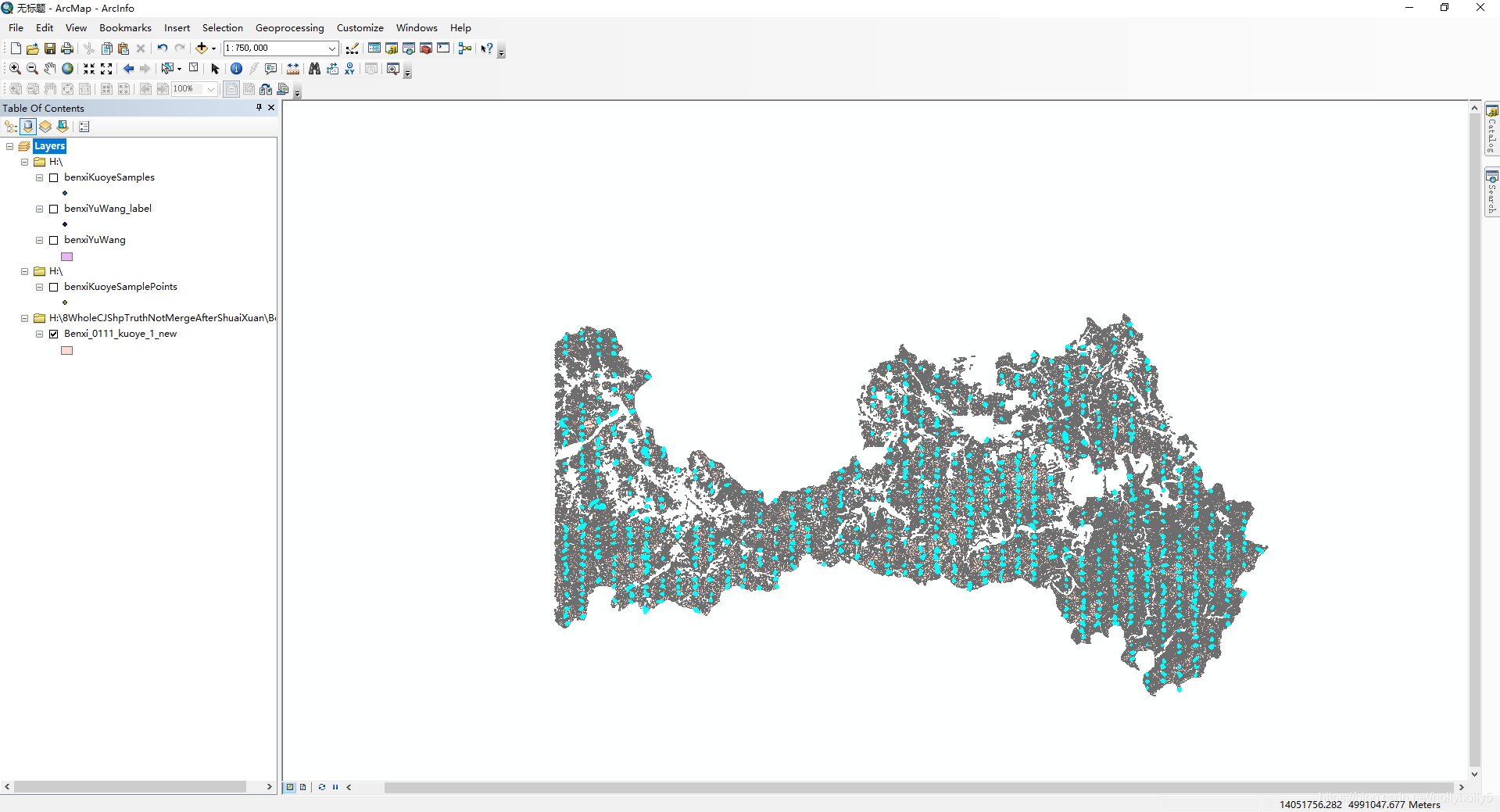 8.至此,按自己设置的渔网密度,可以选择少量的样本进行分析了,如下图所示。