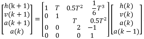 有人私信我说,卡尔曼滤波的时候加速度认为保持不变似乎不妥其实这个可以理解为对加速度a作了零阶保持,即认为a(k+1)=a(k),上面一共三个变量,因此我将其称为三维零阶卡尔曼算法。当然这里也可以替换成一阶保持甚至二阶保持。对于一阶保持,a(k+1)=a(k)+[a(k)-a(k-1)],也就是多了一个微分项那么上面的矩阵以微分表示为或直接以变量表示也就变成了四维一阶卡尔曼算法。二阶保持同理,再多一