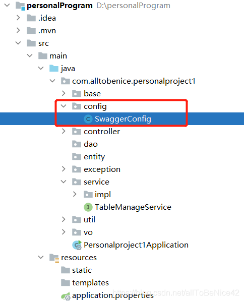 在src/main/java目录下,建里config包,专门放置配置文件,本次实践较为简单,就建立一个Swagger2的配置文件即可;