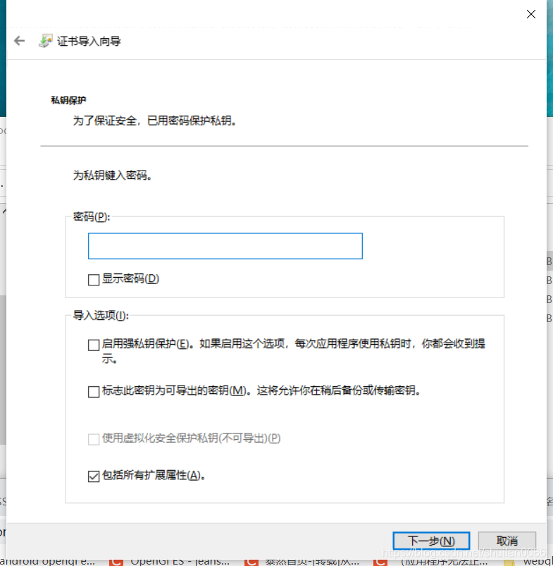 在这里输入证书机构给你的密码,一路进行下去,即可安装。