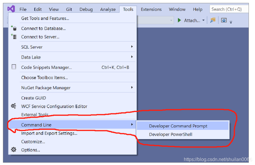 1.VS中打开 开发人员命令提示 或开发人员powershell