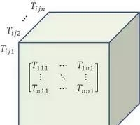 有n^3个分量,也可以构成n个矩阵,每个矩阵都是n×n个元素。设想“n张平面”构成一个“立方体”,好像一块积木。如下图所示: