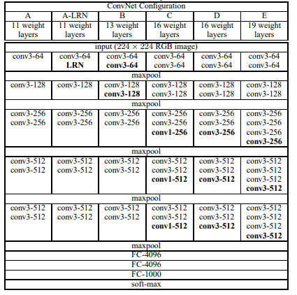 用小的卷积核(3*3)不断来加深网络,评估在不同深度下对大规模图像识别中准确率。