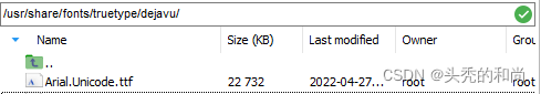 2.下载之后,将字体放在系统指定文件下:/usr/share/fonts/truetype/dejavu/。具体如下所示: