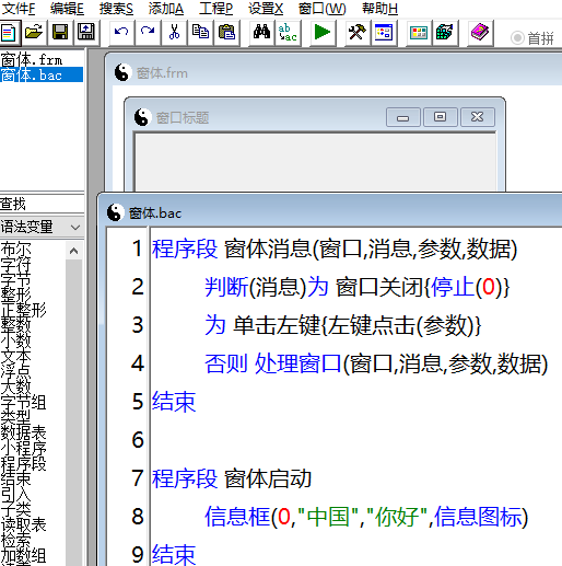 我们可以关闭代码编辑窗口,以后可以双击左侧列表里的窗体.bac,来重新打开代码编辑。