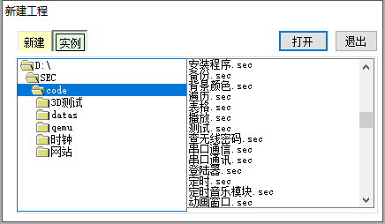 点击新建工程,并点击选项卡的范例,选择左侧列表里的示例文件,点击打开