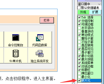 最后再把自动添加的弹出信息框代码删除掉,编译运行就是最大化